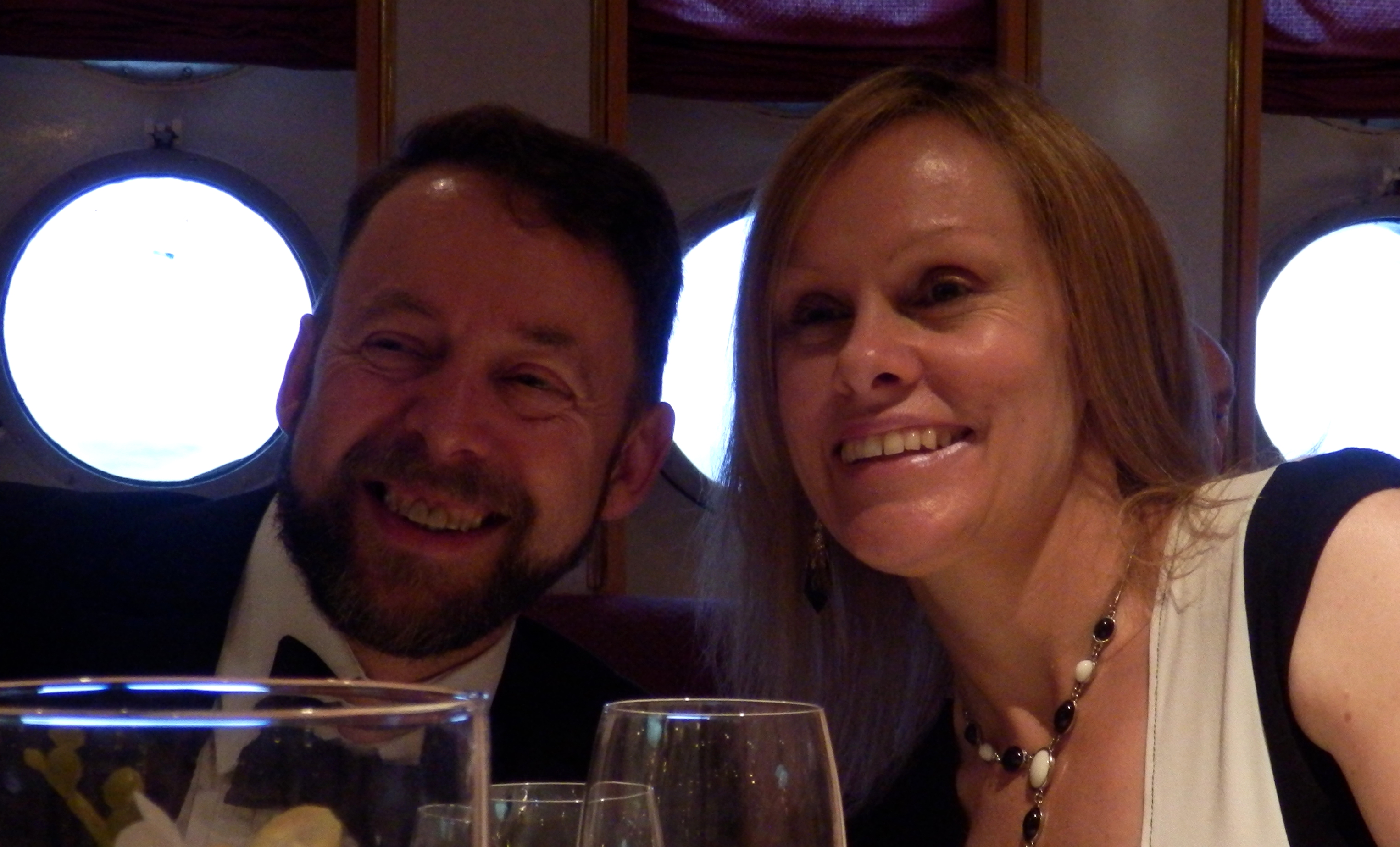 As we sailed round to Flam (pronounced flom) we enjoyed a reception dinner with the ship’s captain. I had practiced tying a bowtie prior to this event and, I believed, become quite proficient in the art but on this inaugural dinner suit event the little bugger proved most recalcitrant. It took a bit of swearing, sweating and numerous attempts before I managed to subdue my bowtie and present myself with my beautiful wife, who had not experienced any difficulties in getting ready whatsoever, for photographs with the captain.