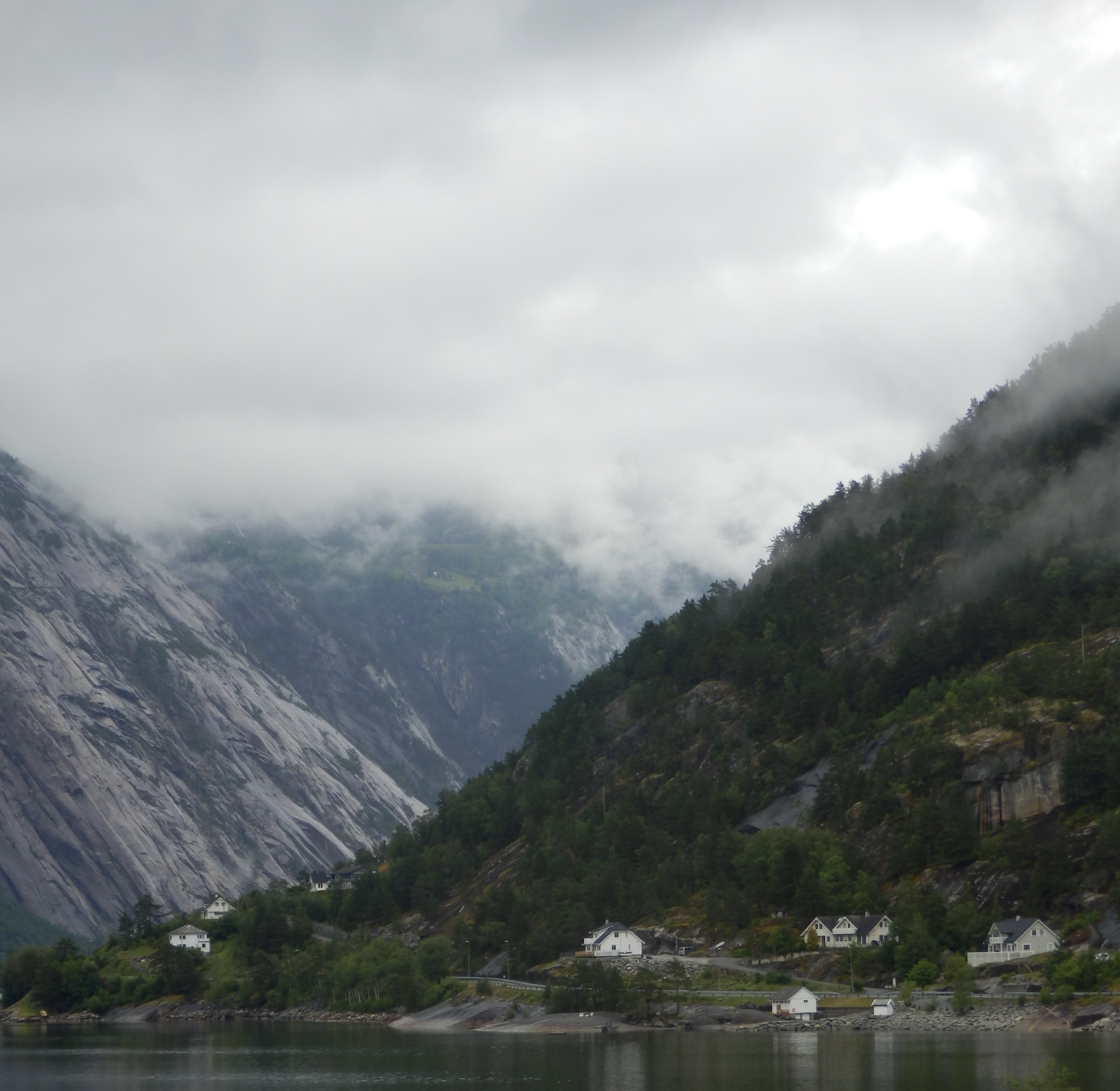 Setting sail on Friday 17th July we reached Norwegian waters on the following day and began our exploration of Scandinavia with a ‘technical’ stop at Ulvik. From there we began the actual cruise of the fjords heading for Eidfjord. The landscape was breathtakingly beautiful; even with low lying mist and light rain. At Eidfjord we went ashore and visited the impressive Voringsfossen waterfall at the top of the Mabodalen valley.